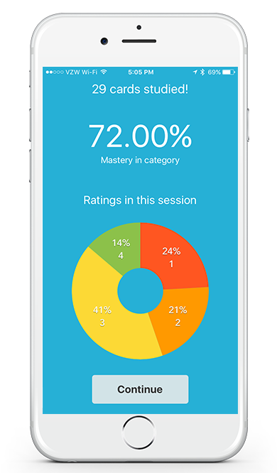 Our “Card View” enables you to quickly review filtered questions and answers together, along with relevant metadata, such as your most recent study score for each card.